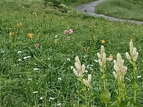 天元台高原のヒメサユリが咲き始めました、コバイケソウ→ニッコウキスゲ→ヒメサユリと咲きそろっていい感じに・・昨日第三リフト降り場のモミジカラマツがもうすぐ花咲きそうでした・・
