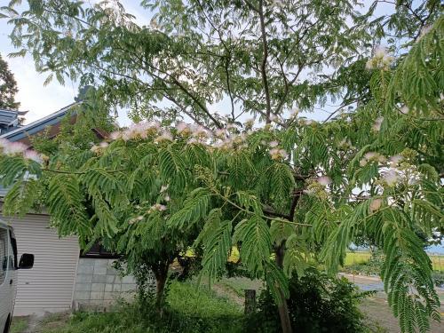 我が家のネムノキの花、昨年は6月26日の数日前に咲く、今年は6月28日に咲いたのを確認したその前の年は7月2,3日頃だった・・和名の”ねむのき”は、「眠る木」を意味している、夜になると葉が合わさって閉じて(就眠運動)眠るように見えることに由来。もう今日から7月です、早いですね・・小さい頃は・もうすぐ夏休みになる!という高揚感、ウキウキでしたねなつかしい小学生の頃・・蝉とり、魚釣り、川遊び、海水浴と・・近所の同級生のいた中華そば屋さんで食べるかき氷・・小学生だったころはねむの木咲くのはもっと後だった、今は6月末に咲くようになってますね・・