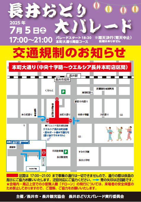 ●長井おどり大パレード7/5(土)【交通規制のお知らせ】
