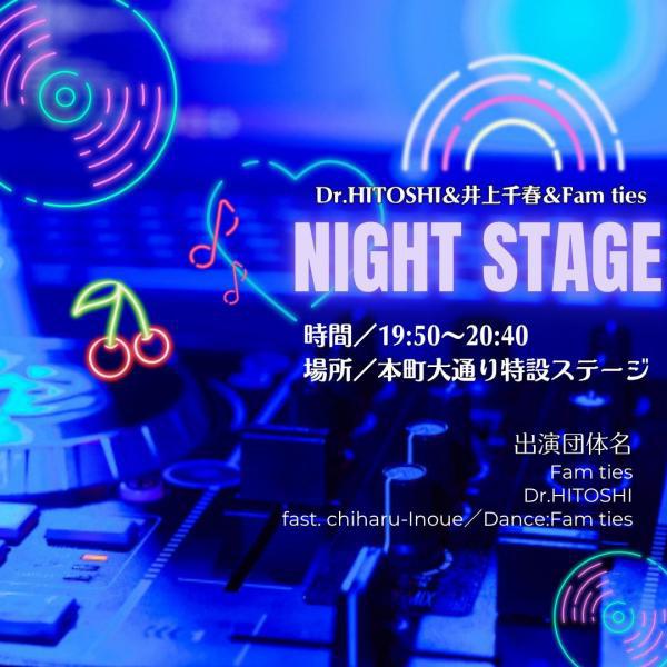 7月5日(土)開催 長井おどり大パレードにて「NIGHT STAGE(ナイトステージ)」が夜の本町大通りを盛り上げます!時間/19:50〜20:40場所/本町大通り特設ステージ◇◆  出演団体名 ◆◇Fam tiesDr.HITOSHIfeat. Chiharu-Inoue/Dance : Fam ties曲のセットリストは当日のお楽しみに!皆様が知ってる曲はもちろん、SNSでバズったあの曲まで…!思わず踊りだしたくなってしまうかも!?パレードが終了しても熱い夜は終わらない! ◆◇  仁春(JINPALL)  ◇◆昭和J-POPを令和へ…「千春」の心に響く歌声と「仁」が創り出すクロスジェネレーションなサウンドが融合し、懐かしさの中に新しさを感じる、心地よい音楽体験をお届けします♪‐ JINPALL1920 ‐長井のうまいもんを堪能しつつ、音楽を楽しみましょう!当日をお楽しみに!