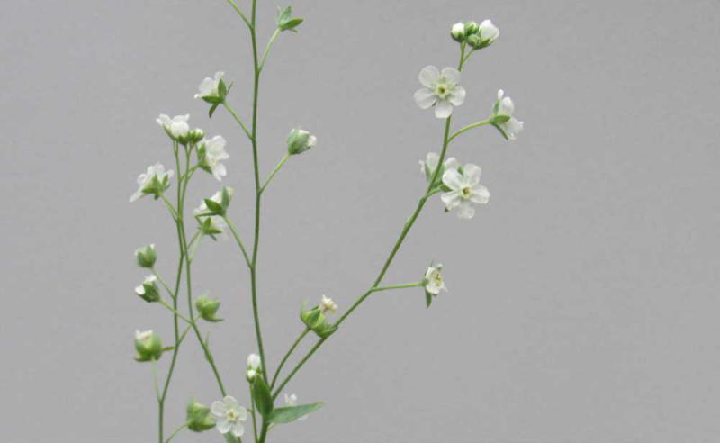 ●秋蒔きの「オンファロディス」を春になってからまいたせいか背丈も小さくようやく咲いた花も小さくとても可愛い花です「オンファロディス」という名前はへそに似たという意味で 種がへそのような形をしているので付いた名前だそうです