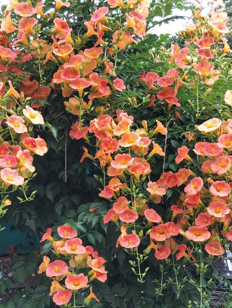 見事に咲き誇るノウゼンカズラ珍しい柄のトンボ…と、カマキリ( ´艸`)いつもお邪魔している、川樋の【ガーデン多肉ゆう】さんのお庭で発見しました!珍しい柄のトンボとカマキリのコラボに、お母さんと二人興奮しきり(笑)
