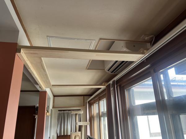 みなさん!こんにちは(^▽^)/前回エアコンの取付を行った現場で今回はキャットウォークの改修を行いました!!エアコンを設置したことで、ねこちゃんが今までのルートを通れなくなってしまったため、新たに2か所橋を架けました☆(=^・^=)☆無事に渡ってくれますように…!!