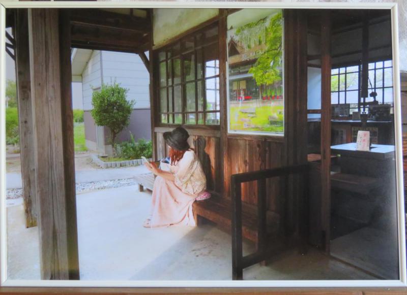 最後に紹介するのは斎藤順一さんの「待つ時間」。舞台は羽前成田駅のホームのベンチ。防雪林の樹間から差し込んでくる夕陽に照らしだされる女性。手にはスマートフォンが握られている。 この作品を熱心にご覧になっていた方に、この作品にどんなタイトルを付けますか?と尋ねた処、「『黒皮の手帳』ならぬ『黒い帽子の女』かな」と笑いながら答えてくれました。この写真に不思議な奥深さを感じさせるのには、ミステリアスな女性の存在が大きいと思うが、同時にホームという空間の特異性も重要に思えるのだ。 この作品を見た時、ホームには待合室とは違った意味を持つ場所なのではないかと思えた。ホームにたたずむ女性はここにたどり着くまでに、どのような人生を歩んできたのだろうか。そして今、彼女は何を思い、どこに行こうとしているのだろうか。ホームには過去と現在、そして未来への扉があるのかもしれない。 中島みゆきの「ホームにて」という歌がある。ふる里へ向かう列車に乗ることを切望しながらも逡巡する心情を綴った歌だ。今は生きづらさを抱え、心のふる里を求めて旅する人も多いだろう。この駅のホームが、そんな人たちに生きる希望を与えてくれる場所となることを願っている。 【おらだの会】これまで掲載してきた作品紹介記事は、当会の勝手な感想であります。何卒ご了承くださいますようお願い申し上げます。なお「7人展\」は8月3日(日)が最終日となります。開場時間等はこちらをご確認ください。 → 「長井線を応援する地元写真家7人展 \」スタート:おらだの会