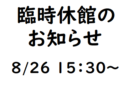 電気設備の工事が入るため下記内容の時間帯を休館とさせていただきます。
