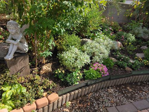 毎日暑い日が続きますが、今年の暑さは長そうですね。折角の恵みの雨も元に戻ってしまい、水やりも復活!日中の気温も30度超えが続いています。暑い中、じーじはバラの剪定など頑張っていますが、中々進みません… 老犬サスケの世話、夫婦で苦戦しています。夜泣きが始まり、処方された薬の効き目も弱く夫婦で寝不足、生活のリズムが狂ってきています。日中も手の掛かる事が多く、計画した庭仕事がそのとおりいかなくていらいらの毎日です。ブログする余裕もなくなって来ました。 今日は、今年、じーじが一番に手を加えてリノベーションした所です! 2016年頃、笹薮をじーじが手作業で土を掘り崩して造った場所です。 急な傾斜になっている中間の場所を崩してロックガーデン風にしたようです。となりのロックガーデンとつないで一体化したのですが植栽した花苗が上手く育たなくて苦戦しています。 以前は笹を植えていたところなのですがゴミ捨て場になっていた可能性があり何を植えても枯れてしまう場所があります。土壌の入れ替えも選択肢です。 ↓5/4のブログより…この頃の下の部分は以前から植栽していたところなので春の花もキレイに咲いてくれています〜♪ 6/4ブログ「ブルーガーデン」で紹介しています。崩した新しい所に新苗を植栽したのですが、成長がイマイチ…今までよりは、見た目ではいい感じになって来ました。 ↓春の花も終わり、7月のはじめポットマムなど新たに、色々植栽しましたが、土が崩れないように、土留めに屋根材を活用してかさ上げしています。 ↓この時は、きれいだったアスターも今は枯れかかっています。やはり、土の条件が悪いのか… かろうじて残っている花達です。 8/2パチリ!ここまで成長しましたが、今は花芽がありません。これからの新芽に期待です。 ガーデニングの楽しみ方にはリノベーションにもありますね。