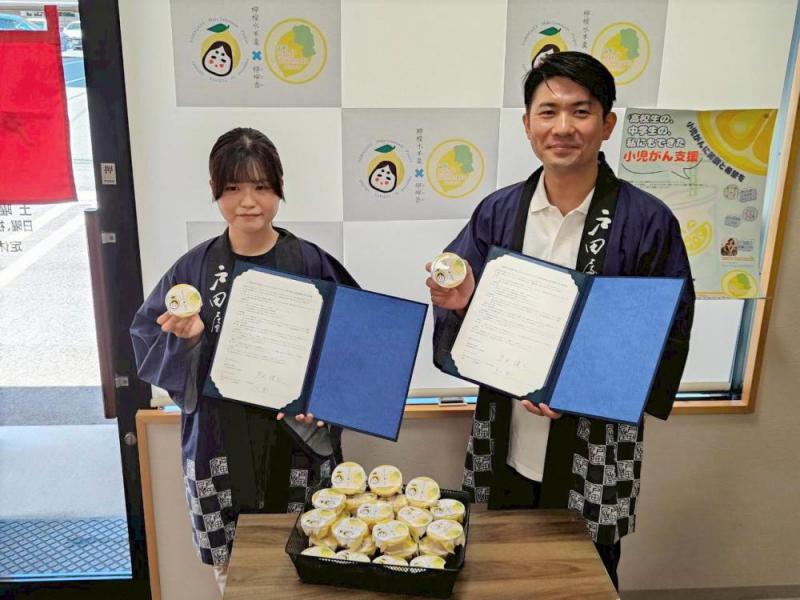 8/18(月)菓子店の「戸田屋正道(山形市)」と「山形 Make Lemonadeプロジェクト(YMLP)実行委員会」と共同開発したレモン味の水ようかん『檸檸香(ねねか)』を戸田屋正道の店舗にて販売しました。販売に先立ち、戸田健志社長と平田さん(YMLPリーダー)が小児がん患者支援を目的とした協定書を交わしました。 この『檸檸香』は12月まで戸田屋正道の店舗で販売されるほか、ボランティアサークル「nicoこえ(県青年の家支援)」によるレモネードスタンドの場にて販売いたします。販売価格1個300円で、そのうち30円が山形大学医学部小児学科に寄付されます。優しい甘さとレモンの爽やかな香りが感じられる水ようかんの「檸檸香」をどうぞよろしくお願いいたします! 「nicoこえ」による今後のレモネードスタンド開催予定は以下の通りです。・9月6日(土)11:00〜16:00 → ほっとなる広場公園(山形市七日町)「なのかまちマルシェ」・10月11日(土)9:00〜12:00 → 天童市総合福祉センター「いきいき・ふれあい健康福祉まつり」 ・10月25日(土)時間は未定 → 霞城公民館(山形市城西町)「文化祭」・11月8日(土)時間は未定 → 山形大学医学部重粒子センター「重粒子センター見学会」