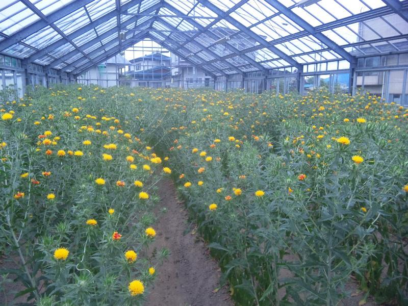●ハウスの紅花満開!見頃です!at山形県河北町紅花資料館