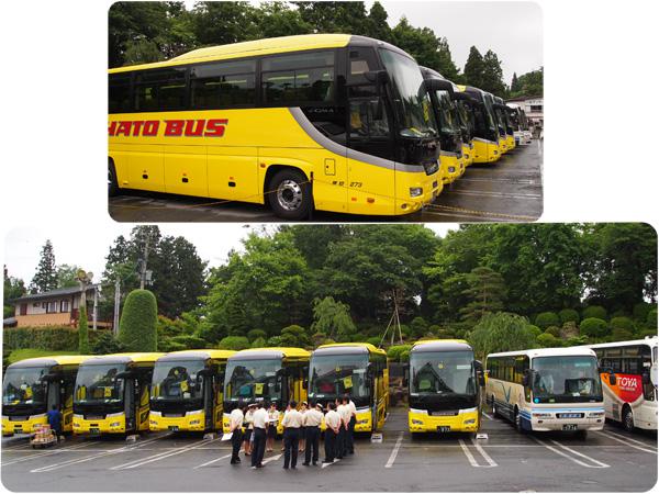 連日のハトバス、カナリア色の大型バスが10台も並ぶととても壮観です!