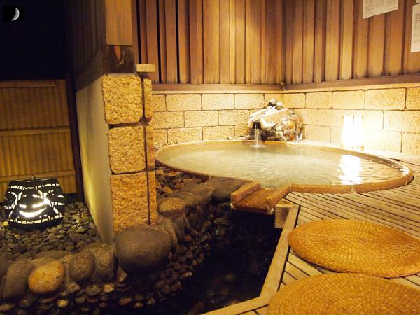雰囲気ある露天風呂と足湯、お部屋にある行燈(あんどん)の灯りがお客様を非日常にいざないます。