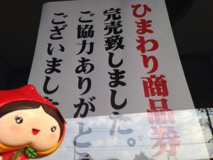 10%プレミアムつきひまわり商品券は完売いたしました。なお、使用期限は平成27年1月15日となっております。