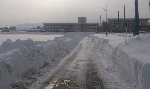 暴風雪から一夜、置農に向かう道は雪の壁。高さ150cmはあるのかな?まだ12月というのに、先が思いやられます。