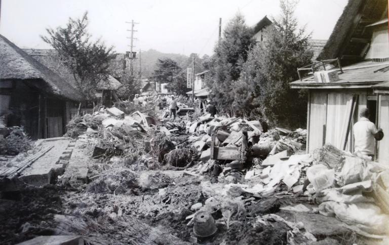 バードは、宮町に入っていく。この宮町の通りに自分の現在の実家がある。昭和42年8月末に羽越を襲った大水害。宮町はくぼんでいる通りで低いため、小松の町中でも一番甚大な被害を受けた。 当時小学5年、この時は隣の殿原というところに住んでいたが、本当に恐怖であった。この宮町から殿原そしてあら町、坂ノ上を通りその坂ノ上の西永十に宿泊している。因みに、坂の上は水が上がっていないのである。ゆるいが高くなっている。 丸太写真館さんがこの水害のときの町の様子を写真に収めている。そこと同じ現在の写真。水害前まではほんとに茅葺屋根が多かったんだと感じる。バードが通過したころはまだ民家は少ないが、こんな萱屋根が連なるとおりだったと思いをはせる。この水害を境に高度成長ともあわせ萱屋根民家は一斉に姿を消した。右の茅葺民家は当時と同じのようだ。