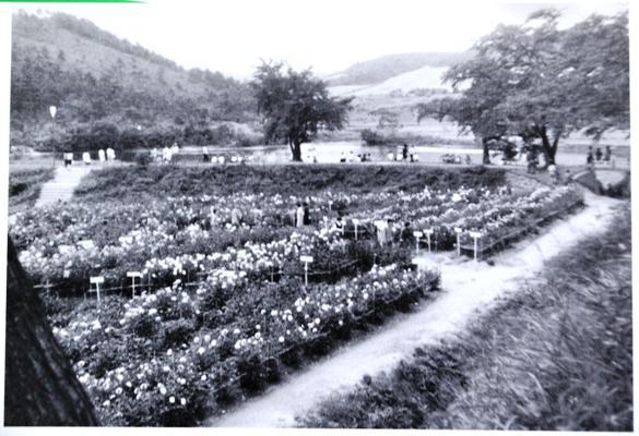 昭和35年9月21日国内初の鑑賞型ダリア庭園『川西ダリヤ園』が開園された、平成10年まで開園されていたが平成11年に現在のダリヤ園になっている、昔のところは現在ハーブ園である。 川西町誕生当時、町を代表する観光地づくり、町民が親しめる公園づくりが目指され、話し合いが進められ、その結果、町内の「花の会」でダリア栽培が楽しまれていたことからダリヤ公園を設営することになったとの事です1975年(昭和50年)には町の花をダリアに制定している。(川西町HP参) ダリアは、日本に1842年(天保13年)頃、オランダより長崎出島を経由して江戸巣鴨に導入されたと言われる花であるが、その頃は天竺牡丹と呼ばれ、ダリアと呼ばれるようになったのは徳川末期になってからとのことである。ところでDahliaの発音は日本においては「ダリア」が一般的であるが川西町では、看板、案内板、旗、ダリアに関する商品もすべて「ダリヤ」となっている『ダリア』と変更することなく『ダリヤ』の名で慣れ親しまれているのである。町田は『ダリア園』である、都会では相模原市に住んでいて、その町田ダリア園もなじみがある、町田ダリア園は障がい者の働く場として町田市が設置し、まちだ福祉作業所が運営しています。町田は昭和60年6月開設し、開設にあたっては、日本一のダリア園である我が故郷の「川西ダリヤ園」から、球根を寄付するなど協力関係にある。私の母は昭和50年から13年にわたり町のダリヤ園でダリヤの栽培・管理に携わっていた。自分もこの公園はいつもの遊び場であった。 昭和35年開園直後の写真が(置賜の昭和)いき出版にあったので投稿、それと現在の箇所を撮影(現ハーブ園)を掲載する、開園翌年昭和36年に弟が生まれ、公園で私の母と兄、ばあちゃんそれと母の姉が写っている写真がある、これらは水害でも残ったもので懐かし風景が見れる。 因みに私のばあちゃんは8人も子を生んだ豪傑ばあちゃん、母の一番上の姉が今ならばあちゃんのようだ、母が小学3年で父が急逝した、4つ下にも双子の弟、妹もいて、母子家庭になったばあちゃんは、子にぼろを着せては恥ずかしいと、寝る間を惜しんで働いたそうだ、それを見ていた姉も母も出来ることは進んで手伝いをした、仕事で忙しい母(私のばあちゃん)に変わり姉は下の子をおんぶして学校に通ったそうです(ほんとにドラマ『おしん』の世界で泣けてきます。その姉が嫁に行くとき母も妹弟も行かないでと泣いて頼んだと聞きました、その姉は私の弟が生まれた昭和36年、子供が既に高校生で当時珍しくカメラを持っていた、写真好きで私たちの写真もよく撮りに来てくれたそうです。