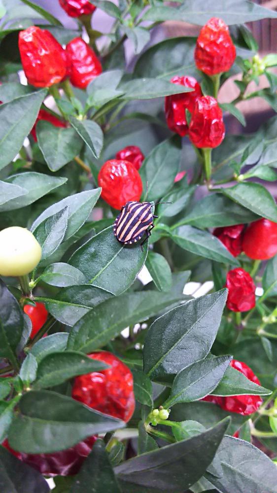 とうがらし。。。ですが。。。オシャレ模様の虫さんが気になります!