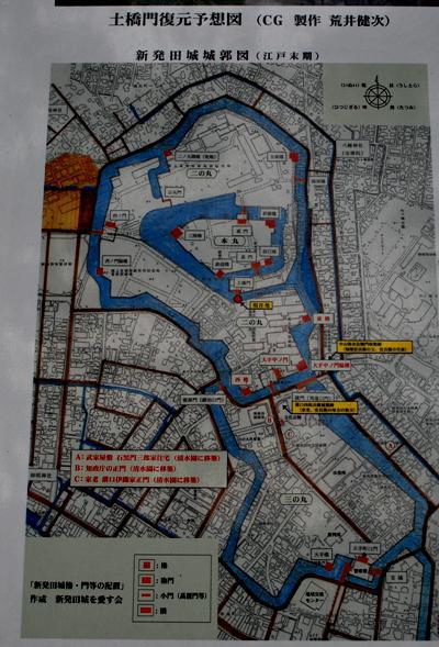 2017年1月3日新潟三越のターシャ展行く途中、1時間ほど時間に余裕があり気になっていた新発田城見学によってみました、別名「あやめ城」とも呼ばれ、初代新発田藩主溝口秀勝(みぞぐちひでかつ)侯が慶長3年(1598年)に築城し、3代宣直(のぶなお)侯のときに完成したそうで、 山城とちがって、政治・経済の中心として交通の便利さを考え、平地につくった平城です。石垣がすき間なくかみ合うようにきちんと積まれる「切込はぎ」と呼ばれる美観を重視した技法でつくられ、北国の城特有の海鼠壁は全国的にも珍しいものです。と看板に記載があります。。表門前にはこの地が誕生の堀部安兵衛の像がありました、赤穂義士の討ち入りで中心的な役割を果たした有名な安兵衛さんですね、のぼり旗に”忠臣蔵を大河ドラマへ”とありました、各地の義士にかかわる市が活動しているようです。 新発田城は本丸、二の丸、三の丸と、堀や石垣に囲まれ、新発田川の水を巡らせた想像以上の大きいものでした、案内看板には11棟の櫓と5棟の門が並び壮観な景観を呈していましたとあり、中でも、天守閣の代わりを果たしていた三階櫓、3匹の鯱を配するという独特の櫓で、全国にも例がない大変珍しいものとあります。 明治初年に撮影した古写真が19枚あり、絵図も残っている看板に掲載されているのでまたゆっくり観にきたいと思います。