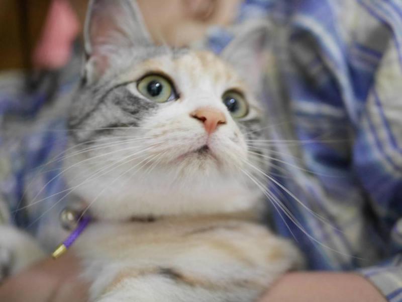 お姉ちゃんに抱っこされて満足そうなにこちゃん。
