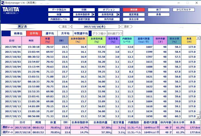今日までのヘルスメーターです。一時は68s台に突入しましたが、現在は70~71s周辺で上下しています。数値的にはこれでいいんですが、今月もうすぐ人間ドッグなので、69s台で受けられたらいいなぁ!と思いがんばっています。