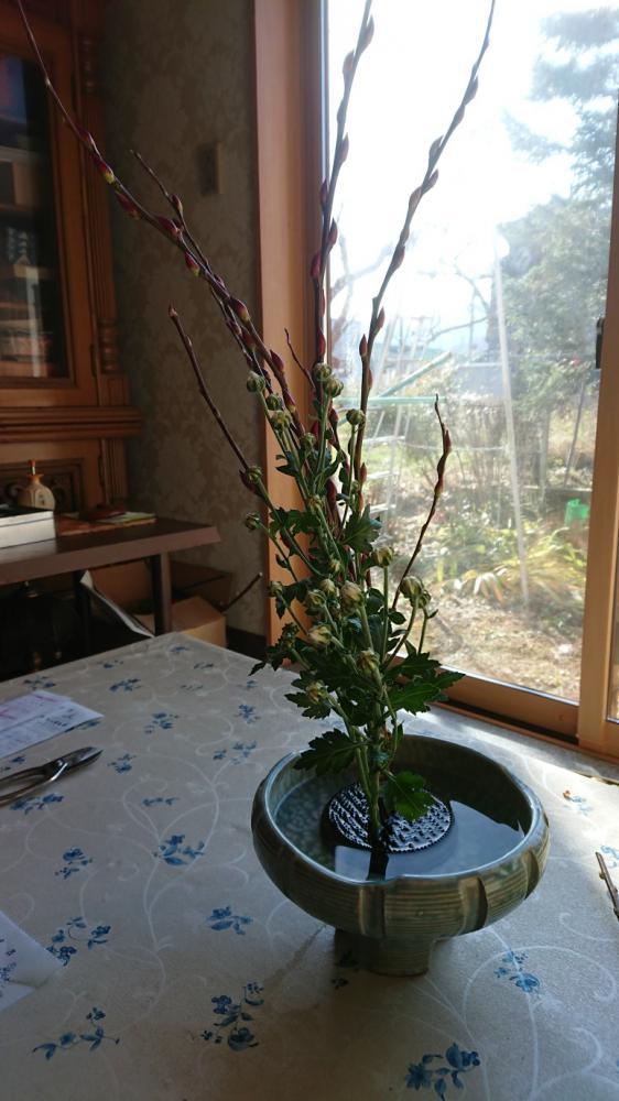 今日は、朝一番でお花のお稽古がありまして・・・・・赤芽柳・小菊の材料で二種生けをいてきました(^。^)v柳は曲げたりして形が自由にできるが難しい!!「柳に始まり柳で終わる」そんな言葉の意味に奥が深い材料であります(^^♪