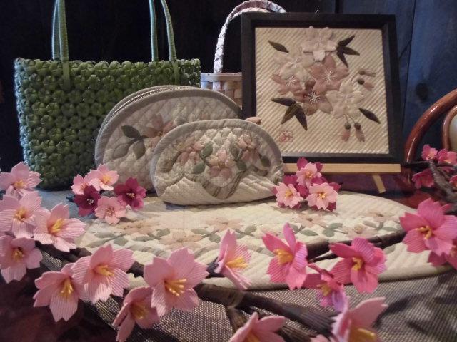 パッチワークのポーチ・タペストリーなど紙バンドで作るクラフトの桜の花【桜シリーズ】を集めてみました(^。^)v一足 早く 春を満喫しております。