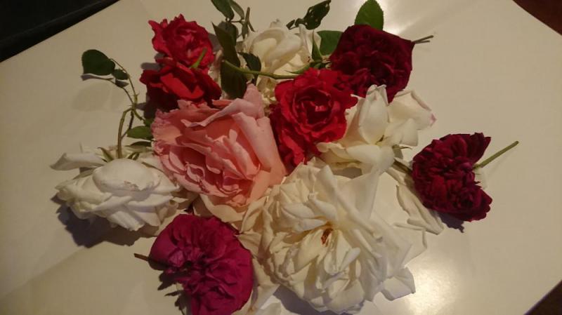 今週は、【薔薇】が満開に咲いたので今年も【ソルトローズ】を作ろうかと・・・・・まず 花を摘み・軽く洗い・乾燥させて塩 薔薇の花びら塩の順に瓶に詰めていきます。ほどよく薔薇の花の香りがついたら完成!!去年のはバラの香りがプンプンついて良い感じでした〜(^^♪