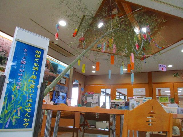 来月7月7日の七夕に向けて、館内に青竹を2本飾りました。