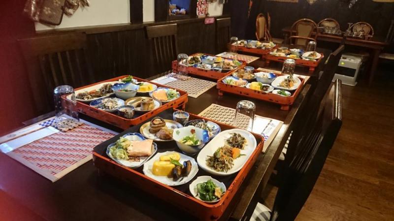 美蔵の夜の営業は要予約になります。お電話で遅くとも1週間前にご予約下さいませ。夜のお勧めは【おきたまの伝承料理】のおまかせです。人数は4名様〜お願いいたします。   料金は ¥3240〜 お酒の持ち込みは別途料金いただきます。詳しくはご予約時にご相談くださいませ。**写真は、例)おきたまの【伝承料理】です。ご予約おまちしております。