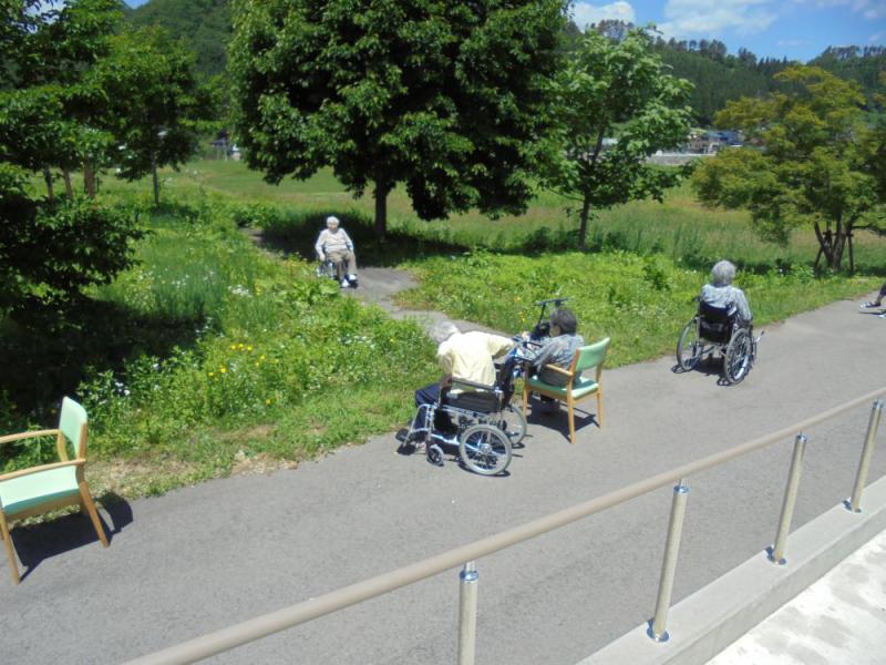 天気のいい日が続いたため、みんなで日向ぼっこをしました。道路を眺めたり花を摘んだり・・・気分転換になりましたか?