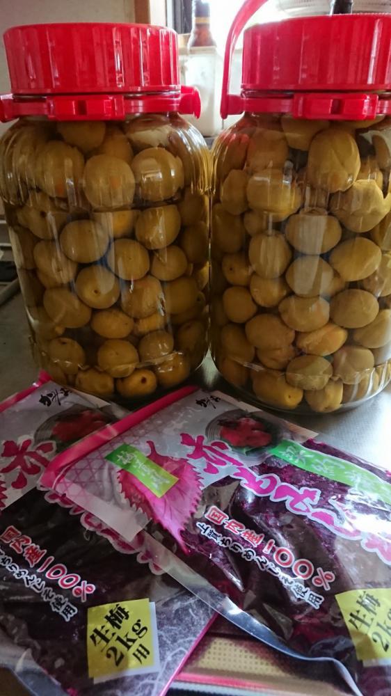 今年の【梅干し】を今日漬けました(^。^)v去年からパッチワーク教室の生徒さんより伝授して頂き挑戦しております。今年もおいしくな〜れと言いながら漬けました。完成が楽しみです。