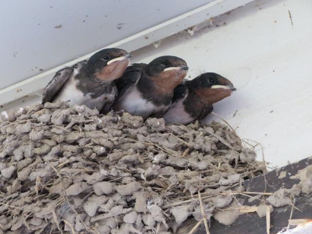 自販機室の4羽のツバメのヒナたち、かなり大きくなりました♪