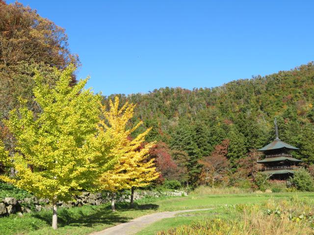 安久津八幡神社周辺の、山々と公園の紅葉が見頃になってきました♪