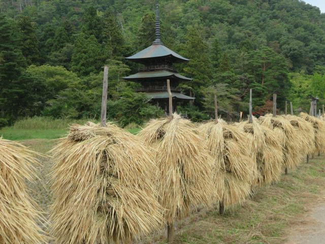 先月29日に、安久津八幡神社の三重塔前の田んぼの稲刈りが行われました。