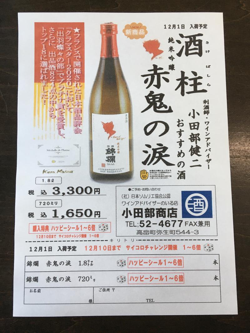●はい!小田部商店です!錦爛 赤鬼の涙 新発売。うまくてすいません!