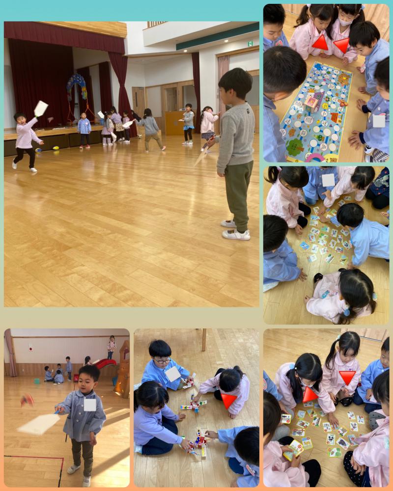 お正月明け、みんな元気に登園して来てくれたうさぎ組さん!!幼稚園では、羽付きやカルタ取り、すごろく、コマなどのお正月遊びを楽しんでいます(^-^)