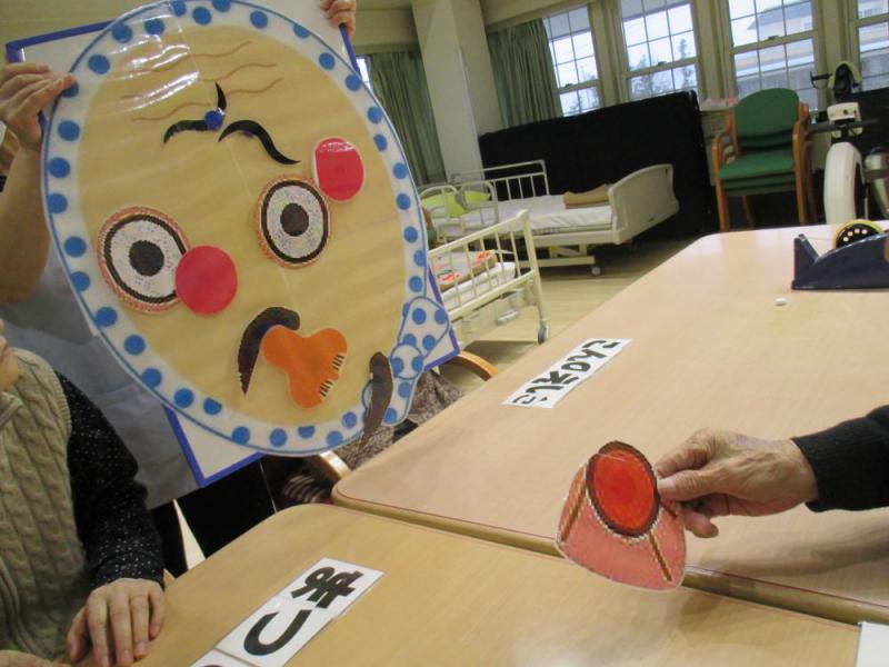 利用者様と一緒に「福笑い」を行いました。顔のパーツに磁石を付けて顔のフレームに投げましたが、思うようにはいきません。だからこそ、沢山笑うことができました。みゆき通所にたくさんの福が訪れますように・・・