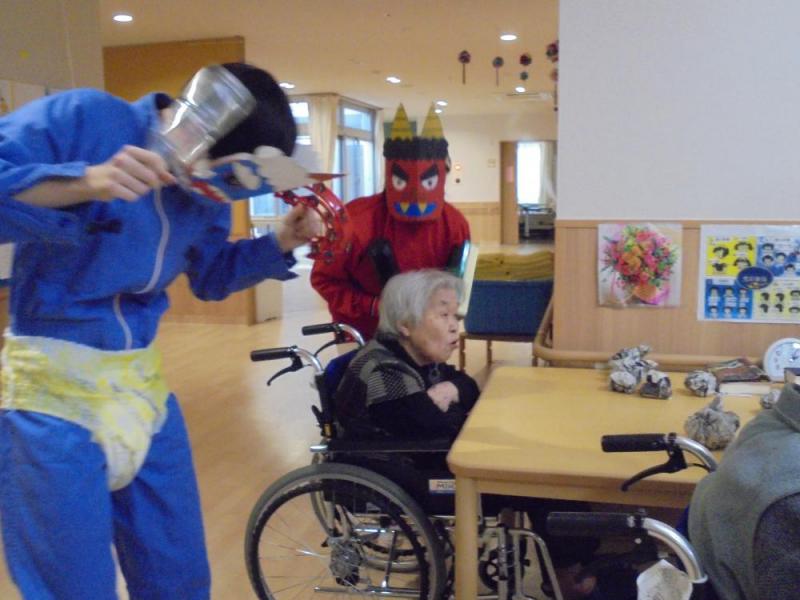 今年は例年でも珍しい2月2日の節分でしたが、あゆみ入所では2月3日に全フロアーで豆まきが行われました。豆は古紙を丸めたものを使い、一生懸命に皆さん豆まきをされて鬼を退治することができました!今年はいい年になるといいなぁ・・・。