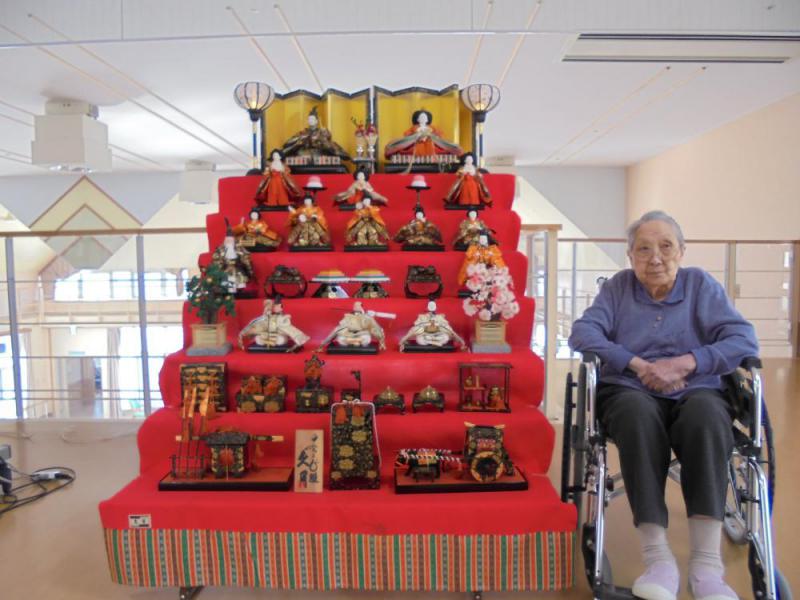 ひな祭りの日に、ひな人形と写真を撮られました。利用者様も「めんごいな〜」と話され、楽しく過ごされた一日でした。