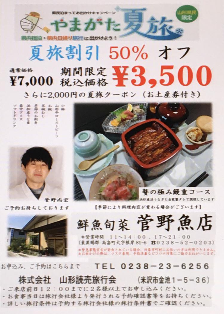 山形県 夏旅 ランチでも、ディナーでも使える50%割引!