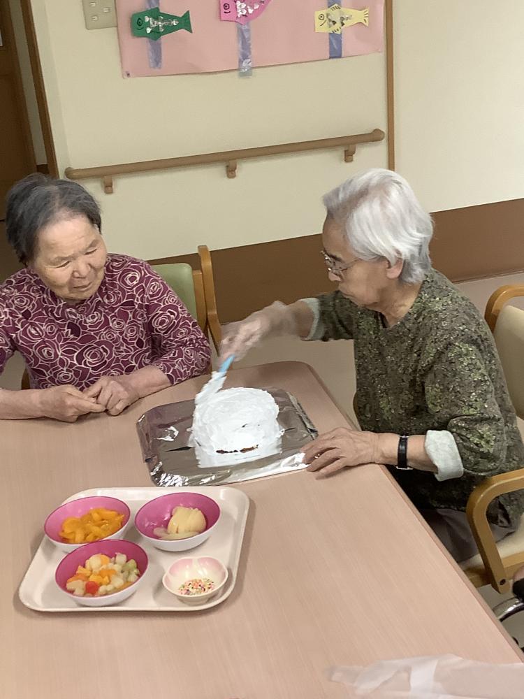 5月末にレクリエーションの一環として、ケーキ作りを行いました。様々なデザインのケーキが出来上がりました!作ったケーキは3時のおやつにて美味しくいただきました。