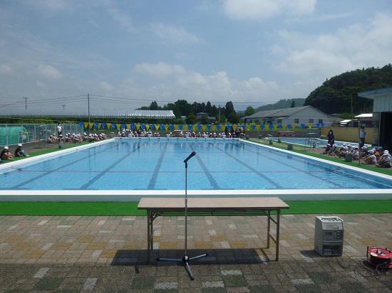 真っ青な空、白い雲!絶好のプール開き日和!全校生が、きれいになったプールサイドに集まり、1年間安全に水遊び・水泳学習ができるよう約束し合いました。続いて、体つくり委員長とともにお清めを行いました。安全に、楽しい水泳学習になりますように・・・次に、1年生から6年生までの各学年の代表児童が、今年の水遊びで頑張りたいことや水泳学習のめあてなどを自分の言葉で堂々と発表しました。昨年度、新型コロナウイルス感染防止のために全くプールに入ることができなかった子供たち。早く入りたい!という気持ちがびんびんと伝わってきました!最後に、担当の先生から、これからプールを使う上での4つの約束について、お話がありました。1つめ、プールサイドを走ったり、友達にしがみついたり、プールへ飛び込んだりしないこと。2つめ、安全のためにプールサイドではサンダルを使うこと。3つめ、前の日お風呂に入って髪の毛を洗うなど、体を清潔にしてプールに入ること。4つめ、コロナ感染防止のため、密になったりマスクを外しておしゃべりしたりしないようにすること。この4つの約束を常に頭に置き、自分の泳ぐ力がぐんと伸びるよう、楽しい水遊び・水泳学習にしていきましょう!