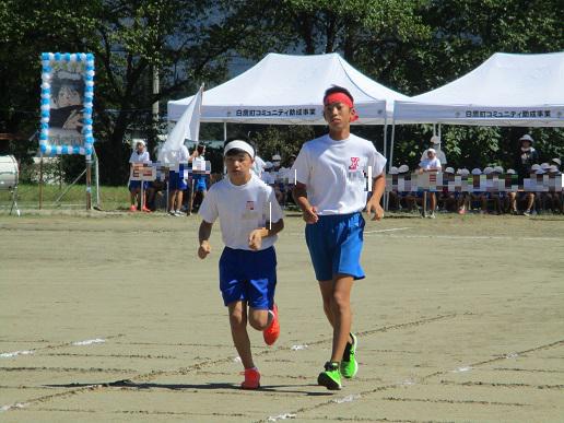 9月19日(日)、台風で1日遅れの運動会が始まりました。これは入場の様子。どちらの組も、気合十分で始まりました。 1年生のかわいい開会のあいさつ、赤白組頭の決意の言葉、準備体操での幕開けです!今回のテーマ、「離れていても心は一つ、優勝目指して駆け抜けろ!」の通り、こぐわっ子たちは、駆け抜けました!(コロナ感染症予防のため、体を近づけての団体競技ができないこともあり、走る競技が多かったのです。) 走る走るおれたち〜♪のメロディが流れているようでした・・・ みんな、いい顔! ほっと一息タイム・・・。いっぱい飲んで! 保護者の皆様にも、がんばっていただきました! 本部も、計算間違えないように!1・2年の技巧走では、なごやかな時間が流れます。(^.^) 2週間で仕上げた応援披露。どちらの組もすばらしい! 3・4年生、技巧走、かなり細かいステップが必要です。 アナウンスも必死です。 来年、最上級生としてリードする立場の5年生も、陣地応援頑張っています!二人の顔、いいねえ! 蚕桑オリンピック選手団のアップ。ほ〜、思わず見とれてしまいました。 いよいよリレーが始まります! バトン落とすな〜!走れ〜!! 今だ! 様々な声が飛び交います。! 先生だって、飛んでます! 見ているこちらも息をのむ展開!息がつけません・・いよいよ、アンカー!来るのはどっちだ! おっ?白! 歯を食いしばる赤! 白が、勝ちました。おめでとう! 閉会式。結果は、12点差で赤の優勝!本当によくやりぬきました!おめでとう! 準優勝、白!そのカップも、重たいぞ!みんなの努力の結晶です! なんと、1年生80m女子の部で、新記録が出ました!おめでとう! 副実行委員長による閉会宣言・・・。 それぞれ陣地に戻って解団式。みんな、充実感でいっぱいです。組頭はじめ、幹部の皆さんも、お疲れさま! 組担当の先生方も、ぐっとくるものを抑えての言葉だったことでしょう。 この2週間、こぐわっ子たちの心が、ぐーっと一つになる様子が伝わってきました。6年生、ありがとう。1年生から5年生、また来年もいいものを創り上げましょう!全員に大拍手です!