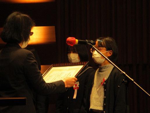 10月30日(土)、第51回白鷹町芸術祭の1日目。オープニング前に、町の読書感想文コンクールの表彰がありました。写真は、見事「図書館長賞」に輝いたこぐわっ子です。図書館の館長様(昨年度までの蚕桑小学校の校長先生です。)から表彰状をいただきました。「書くこと」は、自分の考えを確かなものにすること。「書くこと」で、また新たな自分の発見があったり、確かな自分が創られたりします。本当におめでとうございます! 音楽部門のスタート、荒砥高校吹奏楽部さんによる演奏に、ぐっときました。いよいよ、2番目の発表、蚕桑小学校です。スポットライトの中、大勢の前で堂々と語り、踊り切りました。 ちょっと緊張気味・・・。がんばれ! 最初は、正調踊りから・・・ 次は笠回し系へ・・・。一人ひとりが一生懸命、きれっきれ、かっこいい!この迫力を皆様にお伝えしたい!そんなことを思いながら、見ていました。 大拍手!!本当に素晴らしかった!この踊りは、チーム5年生の一生の宝物となることでしょう。