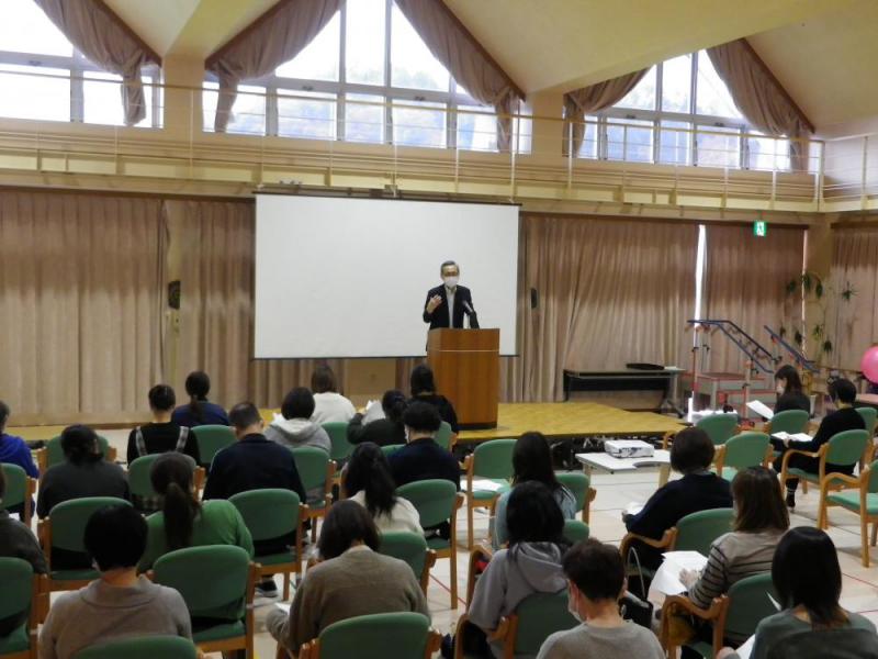 今回、新型コロナウイルスの流行もあり、感染症・クラスターについての研修を始め、業務管理体制や高齢者虐待防止に関して等の研修を行いました。また、今年度は永年勤続表彰として3名の方が表彰されました。
