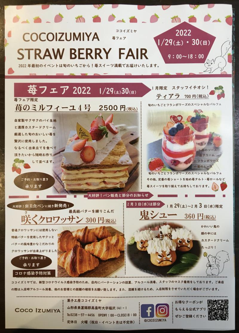 ●はい!小田部商店です!ストロベリーフェア開催予定!ココイズミヤさん
