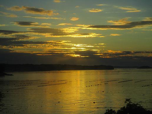 2日目、4:26分。日の出は4:13分と聞いていました。子どもたちは半分くらいその時間に日の出を見たとか。 そして、二日目の朝食は、一人ひとりがスリッパをきちんとそろえていました!大進歩!「おいしいね。」「うん。」 みんな、調子よく食べてる食べてる・・・ 2日目も、大丈夫!と確信。 連絡とごちそうさまの挨拶をして…      ホテルともお別れです。 ホテルを出て、実際に震災があった場所へ。 複雑な地形のため、この、子どもたちが立っている場所へ、津波は海からと山からやってきたそうです。 時計は津波が来た時刻のまま‥。中学生は、1回目の津波が引いた後、高台へ走って逃げたそうです。ただ、逃げ遅れた1年生と老人を助けようとした先生が命をなくしたそうです。 跡形もない小学校・・・ 24歳の娘さんが、命尽きるまで避難を呼びかけた防災センター。 その時の生の声を、聴かせていただきました。 「手と手を合わせると温かいでしょう?ほかの人の手と自分の手を合わせるともっと温かいのです。どうぞ、他の人を助ける自分になってください。みんな、最後まで生きようと必死でした。また生き残った私たちも、必死でした。…」もっとたくさんのメッセージを受け取ってきました。何事も最後まであきらめない、そんなメッセージも受け取ってきました。子どもたちの心には、どんな言葉が残ったのでしょう・・。 そして、松島へ。 津波は、ここにも来ました。 瑞巌寺本堂へ。残念ながらここも撮影禁止…。 そして、昼食はカレー 疲れた時にはやっぱりカレーが一番。皿の中は空っぽ! さて、最後の見学地水族館へ。今からバックヤードツアーです。 バックヤードは、暑い!クーラーなしです。 うおっ! 脱皮のあと・・ サメは、一生に2万本歯が生え変わるとか…。 なに覗いてんの〜? そういうことね〜。 −25度の部屋! イルカショーを見て、自由時間。 そして帰路の途につきました。 2日間でたくさんの「初めて」に出会い、集団行動の大切さや、知らなかった「友達の良さ」にも気づくことができました。 スローガンは達成、これから卒業まで9か月、蚕桑小学校のリーダーとして学校を引っ張っていく力をつけてきました。 また明日から、蚕桑小学校を頼むよ!2日間、お疲れさま!そして楽しかったね。
