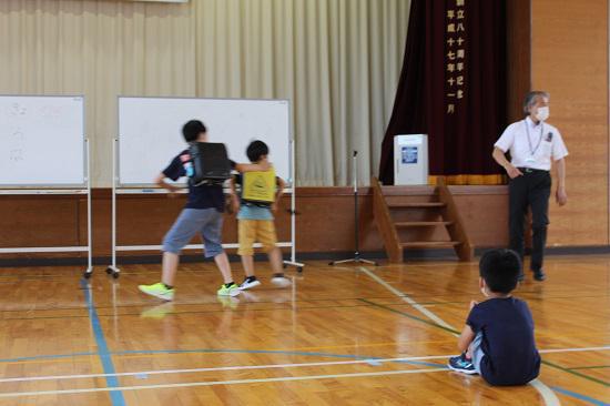 5日(火)、声かけ事案にかかる不審者対応訓練を行いました。この訓練は毎年行っているもので、校内外にかかわらず、自分の大切な「いのち」を自分で守るためにどう対応すればよいのか、一人一人が考え、実行できることを目的としています。時間的にも広さ的にも、全員が体験することは難しいため、代表児童の行動を見て学びました。まずは、ランドセルにつけている防犯ブザーのチェックです。「正常に音はなりますか?」「壊れたり、電池がなくなっていたりしていませんか?」おうちでも点検してみてください。不審者から身を守るための合言葉「きょうはいかのおすし」の確認です。おうちの皆様、この合言葉の意味かわかりますか?ぜひ、お子さんに聞いてみてください。距離を取りながら、危険を感じたときはいつでも逃げられるように・・・危険を感じた高学年の子が、さりげなく低学年のお友達の手を握っていました。自分だけが逃げるのではなく、下学年の友達のことをとっさに考え、取ったこの行動は本当に素晴らしいものでした。やさしい高学年の子供たちです・・・また、今回は、不審者の見分け方についてもお習いしました。その合言葉は、「さしみ」です。この合言葉の意味も、ぜひ、お子さんに聞いてみてください。とても大事な内容です。そして今年度は、校外で子供たちに何かあったときに助けていただく地域の皆様にもご案内を申し上げ、お忙しい中、たくさんの方々にご参加いただきました。実際にロールプレイにも出演していただきました。急なお願いでしたが、ご協力くださり、ありがとうございました。たくさんの地域の皆様に見守っていただいていることに心より感謝申し上げます。地域の皆様とのかかわりは「安全」面だけでなく・・・3年生が岡の台ごんぼ栽培に挑戦しています。今年も小松先生にお世話になります!あらかじめテープに取り付けられた種を畑に置き、その上に土をかぶせていきます。みんな丁寧に丁寧に土をかぶせていました。優しい気持ちがここでも表れています・・・最後には、機械での種まきを見せていただきました。あまりの手際よさに子供たちもびっくり!!立派に育ちますように・・・地域の皆様には、土を耕すだけでなく、「心も耕して」いただいています。今年も14名の地域の皆様が図書ボランティアとして、本の読み聞かせや図書室の環境整備にお力添えいただいております。これは、6月8日の第2回目の読み聞かせの様子です。本の読み聞かせだけではなく、語りを通して、話のおもしろさを伝えていただくこともあります。読み聞かせと並行して、図書室や図書室前廊下の飾りつくりをしてくださっているボランティアの皆様もいらっしゃいます。子供たちも職員もいつもドキドキ、ワクワクで図書室に向かっています。本当にありがたいです。図書ボランティアの皆様のほかにも、PTA母親委員会の皆様による本の読み聞かせも行っていただいています。読んでいただく本は、それぞれの母親委員の皆様が各自選んできてくださるのですが、今回はなんと、このように大型絵本を選んでくださった方が多かったのが驚きでした。対象学年やこれまでの読み聞かせの履歴を考慮し、本の大きさの大小や内容など、子供たちのために様々工夫して本を選んでくださっていることを知り、ありがたく思ったところです。読み聞かせ後には、図書室に集まり、ぜひ子供たちに読み聞かせしたい本や子供たちに読んでもらいたい本などを選んでいました。本を購入するときは、教師の目線で選ぶことが多かったのですが、このように母親目線で選んでいただくことも大事なことであり、子供たちの興味関心に直結するのではないかと改めて気づかされました。お忙しい中、お時間を作ってくださり、心より感謝申し上げます。地域の皆様に、様々な立場から見守り、支えていただいている東根っ子109名。幸せですね・・・。