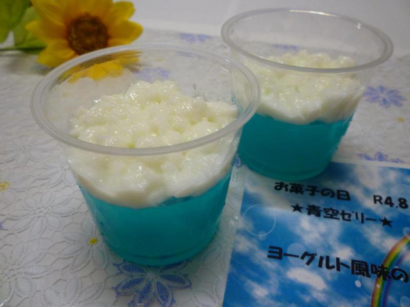 こんにちは!栄養課です。今回は8月のお菓子の日に提供致しました、「青空ゼリー」を紹介致します。 暑い日に涼しげなブルーのゼリーで爽やかさを感じでもらおうと栄養課職員が一丸となり、楽しく作りました。 入所者の方からは、「空みたいできれいだごとー」 「これ、ヨーグルトかっ!うんまいなぁ」などにっこりと微笑んで下さり、私達も幸せな気分になりました。