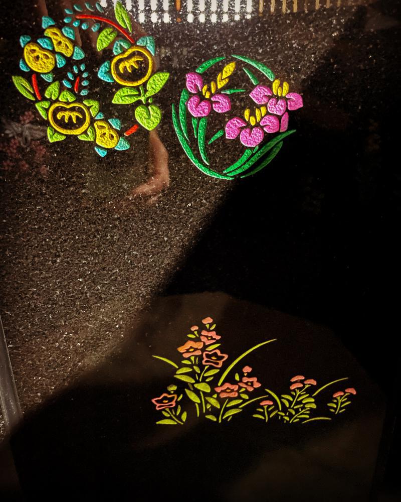 やすらぎ石室内の風景シリーズ1種類の花や絵柄の場合にはタイトルを考える際に悩むことも少ないですが、このように2種類以上の絵柄を組み合わせる場合、タイトルの後付けが難しくなってきてしまいます!
