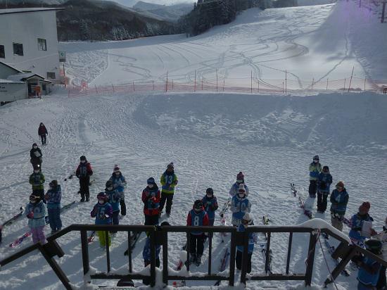 昨日は、六年生の蔵王スキー教室が行われました。朝、7時20分、はやる気持ちを抑えながら、昇降口前で朝の会が行われました。朝早くから、お見送りをしていただきました保護者の皆様に、元気に「いってきます!!」どうか、蔵王スキー場は天気がよくなりますように・・・。蔵王到着!東根っ子の願いが通じました。素晴らしい天気になりました。早速班ごとに準備運動をして、スキー教室午前の部開始!まずはどの班も、地蔵山麓駅を目指します。少しずつ足慣らししながら、いくつかのリフトを乗り継いでいきます。ロープウエイで樹氷高原駅に行く予定でしたが、観光客も含めた激混みで、1時間から1時間半待ちとのアナウンスがあり、急遽リフトで登っていくことにしたのです。ようやく樹氷高原駅から、ロープウエイに乗ることができました。見事な天気で、眺めもバッチリ!!時折歓声が沸くほどでした。地蔵山麓駅に到着!最高の天気!!お地蔵さんはやっと首が出ているくらいの積雪でした。記念写真も撮りました。蔵王の雪質は軽くてさらさら。歩くと、「キュッキュッ・・・」という音が鳴りました。太陽に負けないくらいの輝くこの笑顔!!最高の気分でした!左右の樹氷の間を気持ちよくすいすい滑ることができました!世界中からたくさんの人たちが訪れるこの蔵王スキー場で、思い思いのシュプールを描く子ども達。その心地よさを体全体で感じ、堪能しながら滑っている東根っ子達!待ちに待ったお昼ご飯はカレーライス!みんなおいしそうに食べていました。おいしいカレー&ポテトに、午前中の疲れも吹っ飛んでいました。あれれ・・この班は大量のポテトが・・・子ども達は元気です。休憩もそこそこで「先生、いきますよ〜!!」午後からは雪も降り出し、いつもの蔵王の天気に戻ってしまいましたが、東根っ子達はお構いなし!「いえ〜い!!」白鷹スキー場にはない、様々のゲレンデを満喫しました。「ピース!ピース!」子ども達は本当に上手になりました。寒さに負けない強い心も学びました。誰1人ケガすることなく、仲間とともに滑ったこの蔵王スキー教室はいい思い出になったことでしょう。楽しい時間はあっという間。続々レストラン前に戻ってきました。閉校式では、一日お世話になった指導者のみなさん、おいしいお食事を出してくれたレストラン、そして楽しませてもらったゲレンデに、心を込めて「ありがとうございました!」の感謝のあいさつをしました。楽しく有意義だった蔵王スキー教室。この行事から学んだ様々なことを残りの小学校生活で生かしてほしいと願います。最後になりますが、送迎いただきました保護者のみな様、本当にありがとうございました。