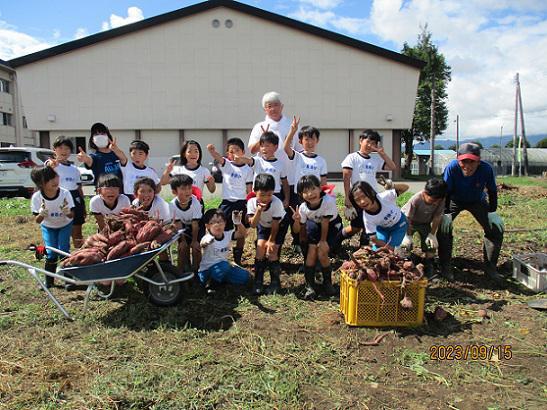 9月15日(金)、2年生がさつまいも掘りを行いました。 まずはツルをよけて・・・ いもほり開始!大きく成長したさつまいもは、なかなか引き抜くことができず、周りの土を丁寧に掘り進めながら収穫しました。ようやく引き抜いた瞬間は、あちらこちらから歓声が上がっていました。「見て見てー!」 ずっしりとした重さにみんなご満悦です。 今月末、収穫したさつまいもを使った「焼きいも体験」が予定されています。どんな焼きいもになるか楽しみですね。なお、1年生がお休みだったため、畑の半分はそのまま残しているようです。1年生のみなさん、休み明けの収穫作業をお楽しみに! <おまけ>”いも”掘りの最中に”いもむし(?)”を発見!「ヘビの赤ちゃん?」「ツノが生えてる!」「謎の生物だ〜!」 と興味津々。どうやら蛾の幼虫のようでした・・・。しかも、ツノが生えているのはおしりのようです。 ちなみに、こちらは2年生の図工作品。こちらは愛くるしい生き物たちばかりです!